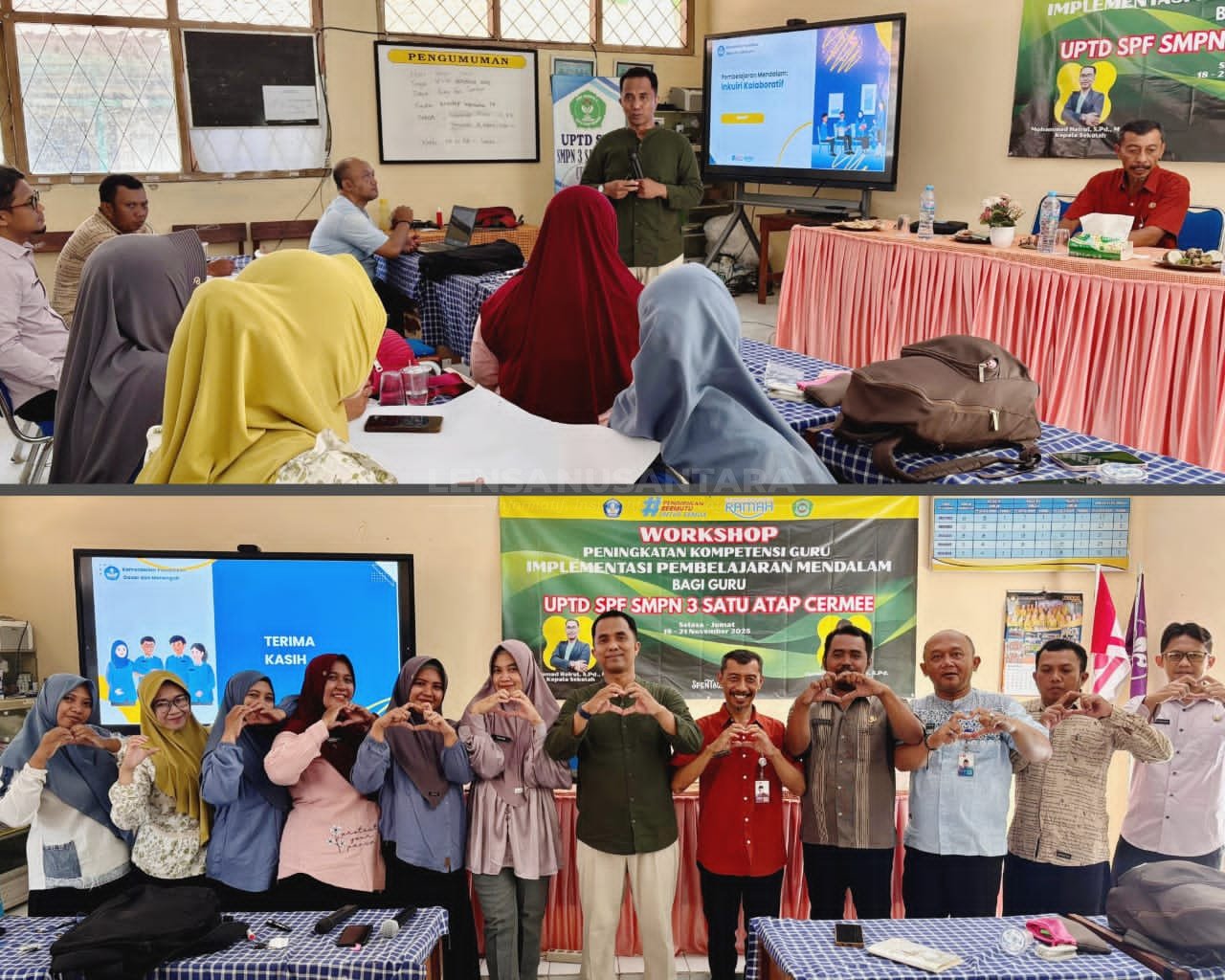 Bondowoso, LENSANUSANTARA.CO.ID – SMP Negeri 3 Satu Atap Cermee, Bondowoso, menyelenggarakan Workshop Peningkatan Kompetensi Guru dengan tema krusial Implementasi Pembelajaran Mendalam Bagi Guru. Kegiatan yang berorientasi pada peningkatan kualitas pengajaran ini dilaksanakan pada 18-21 November 2025, mulai pukul 08.00 hingga 14.00 WIB.