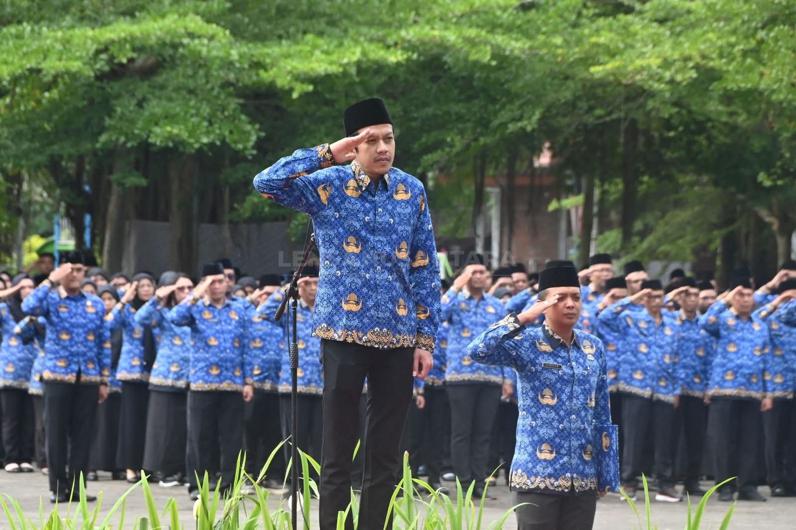 Pemkab Trenggalek memperingati HUT ke-54 KORPRI dengan menggelar apel pasukan di Alun-alun Trenggalek, Senin (1/12/2025).