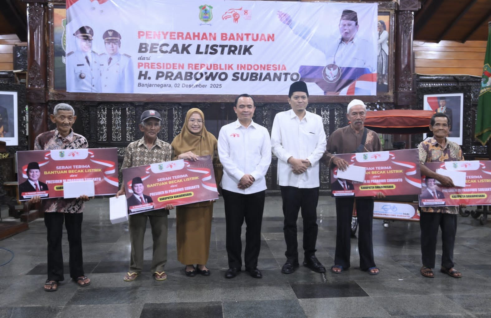 ”Atas nama Pemerintah Kabupaten Banjarnegara, kami sangat berterimakasih kepada Bapak Presiden Prabowo Subianto yang telah memberikan 100 becak listrik untuk masyarakat kami para pengayuh becak,” ungkap Amalia didepan para tamu undangan yang hadir, Selasa, (2/12/2025).