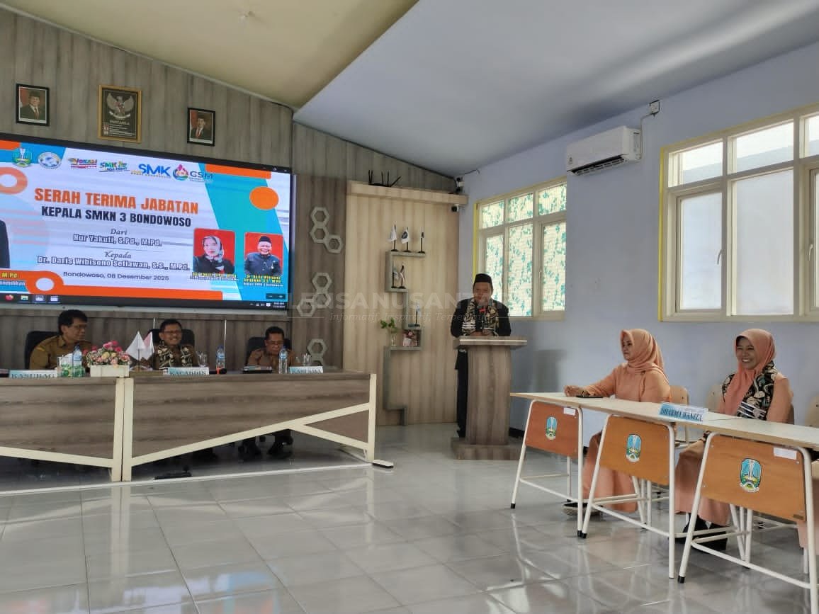 Bondowoso, LENSANUSANTARA.CO.ID -Tongkat kepemimpinan Sekolah Menengah Kejuruan Negeri (SMKN) 3 Bondowoso telah resmi berganti. Sekolah yang populis dikalangan milenial dengan sebutan K-Negabond tersebut hari ini, Senin (08/12/2025) melaksanakan serah terima jabatan yang berlangsung khidmat di aula sekolahnya.