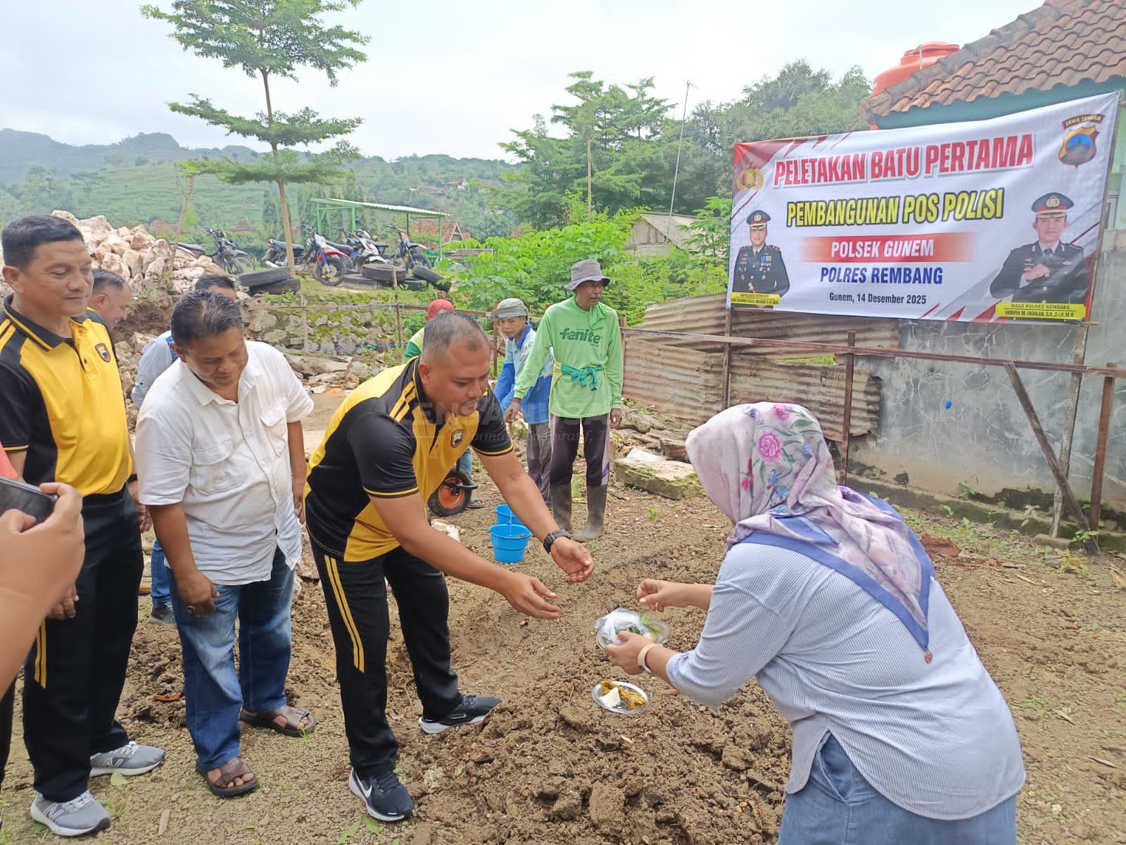 Kegiatan pembangunan pos polisi itu dihadiri Kepala Desa Tegaldowo Kundari, Camat Gunem Fajar Riza Dwi Sasongko, Kapolsek Gunem Iptu Yayat Supriyanto, Danramil Gunem Kapten Inf Kun Muhandis, jajaran Polres Rembang, Forkopimcam Gunem,