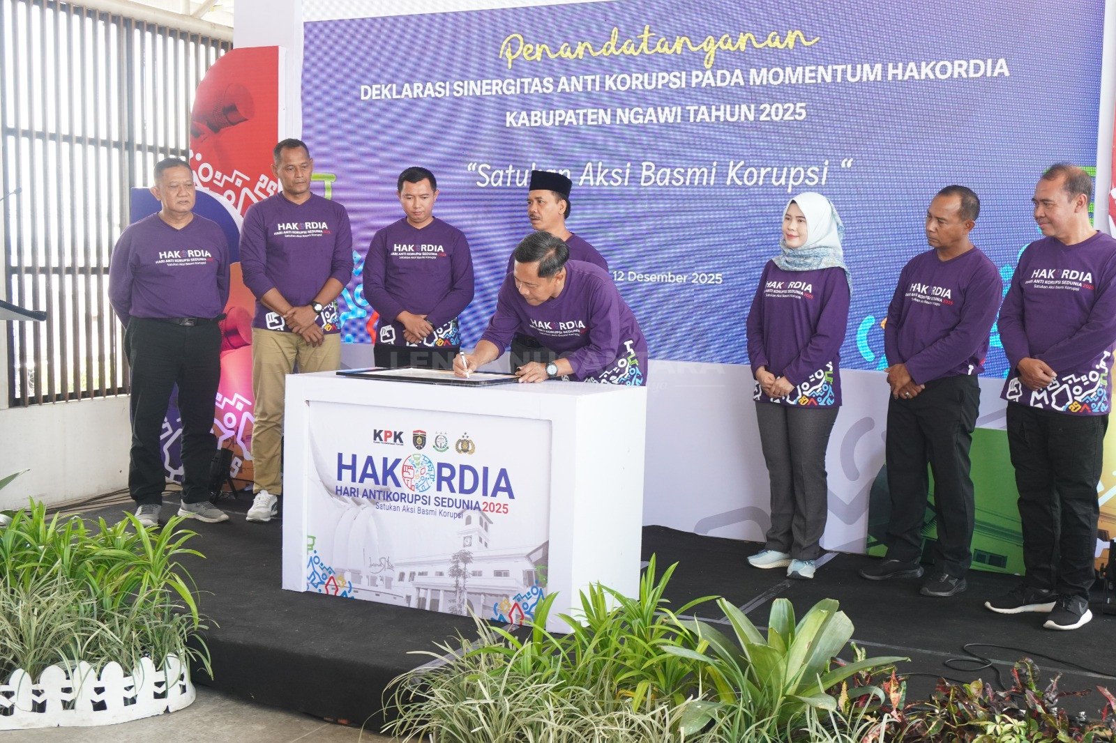 Melalui peringatan HAKORDIA 2025, Pemerintah Kabupaten Ngawi menegaskan komitmennya untuk terus memperkuat sistem pencegahan dan pengendalian korupsi serta mendorong terwujudnya tata kelola pemerintahan yang bersih, profesional, dan berorientasi pada pelayanan publik (Taufan Rahsobudi/ Lensa Nusantara Ngawi).