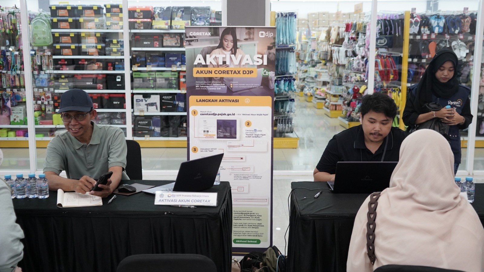 Dalam kegiatan ini, petugas DJP memberikan layanan berupa aktivasi akun Coretax, pembaruan data Wajib Pajak, serta pembuatan Kode Otorisasi DJP sesuai ketentuan yang berlaku.