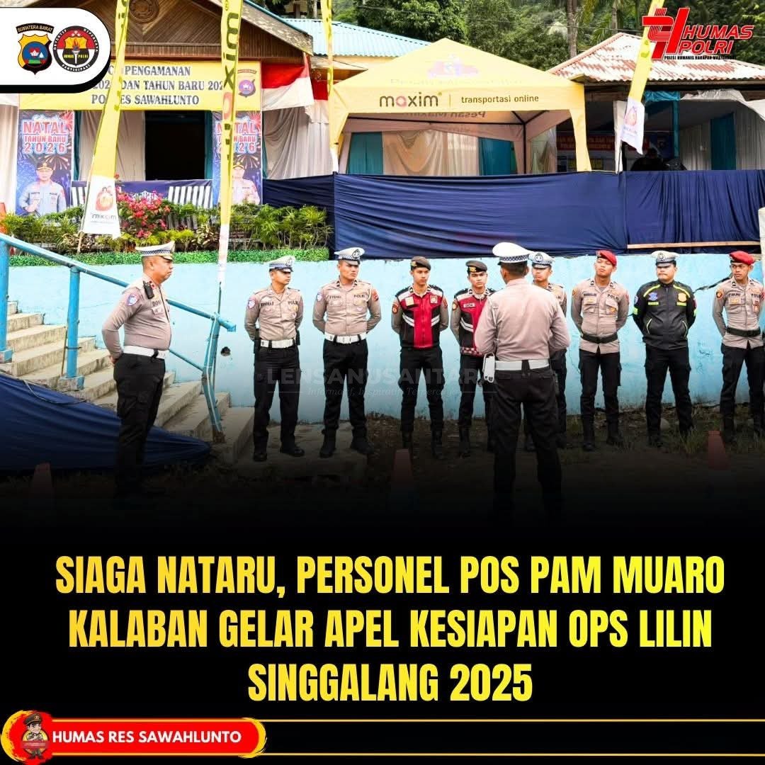 Sawahlunto, LENSANUSANTARA.CO.ID — Personel Pos Pengamanan (Pos Pam) Muaro Kalaban melaksanakan apel kesiapan pengamanan Natal 2025 dan Tahun Baru 2026 dalam rangka Operasi Lilin Singgalang Tahun 2025, Minggu (21/12/2025).