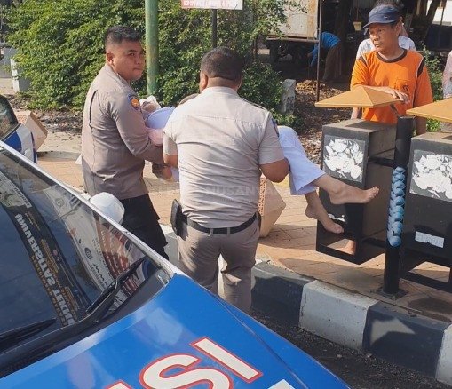 Kasat Lantas Polres Tegal Evakuasi Korban Pingsan Akibat Laka Lantas Saat Melaksanakan Patroli