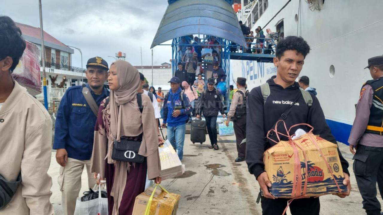 Caption : Persiapan Nataru Di Kampung Halaman, Penumpang Kapal Pelni Turun Dari Pelabuhan Kumai