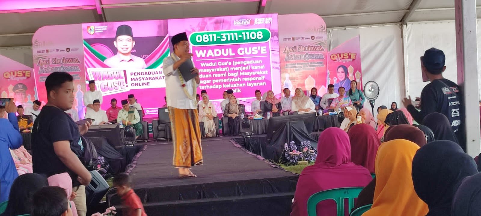 Jember, LENSANUSANTARA.CO.ID – Bupati Jember Muhammad Fawait menggelar Apel Sholawat bersama emak emak di Kecamatan Jelbuk, Sabtu (27/12/2025). Kegiatan tersebut merupakan bagian dari program Gus’e Menyapa, yang menjadi wadah komunikasi langsung antara pemerintah daerah dengan masyarakat.