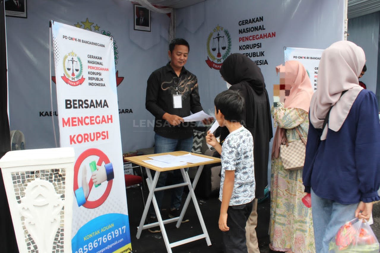 ” Sebagai bagian dari upaya pencegahan, GNPK-RI Banjarnegara juga membagikan stiker berisi kontak aduan, materi edukasi korupsi, serta visi dan misi organisasi kepada pengunjung Pasar Rakyat, kami fokus pada pencegahan, edukasi, dan sosialisasi, tapi jika harus masuk ke ranah pelaporan hukum, kami tidak pandang bulu, korupsi harus dilawan sampai ke akarnya,” pungkas Ketua GNPK-RI Banjarnagara Arief. (Gunawan).