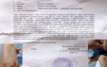 Pernyataan tersebut disampaikan salah satu pengurus KOMNAS LP-KPK berinisial Agustinus Zebua (38), Kamis (22/01/2026), saat dimintai keterangan oleh sejumlah awak media di Desa Sirahia, Kecamatan Idanotae, Kabupaten Nias Selatan, Provinsi Sumatera Utara.