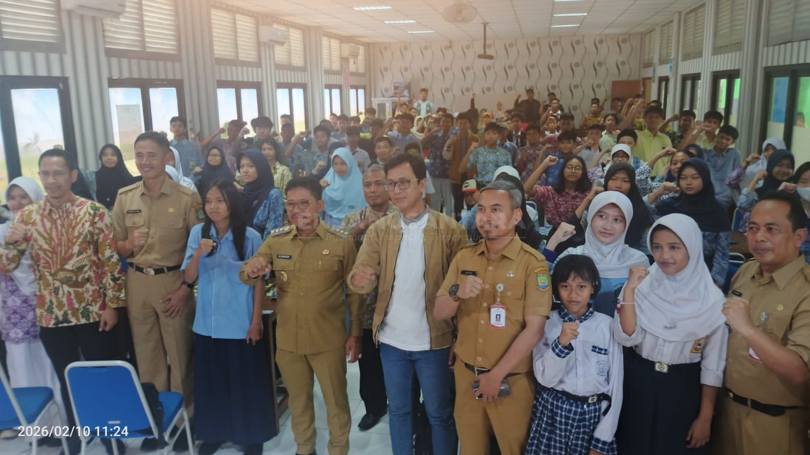 Wali Kota Tangerang bersama jajaran pengurus, guru, serta orang tua/wali murid menyanyikan lagu kebangsaan Indonesia Raya saat pembukaan Lomba Catur Pelajar HUT Kota Tangerang ke-33, sebagai wujud semangat nasionalisme dan kebersamaan. (Selasa, 10/2/2026)