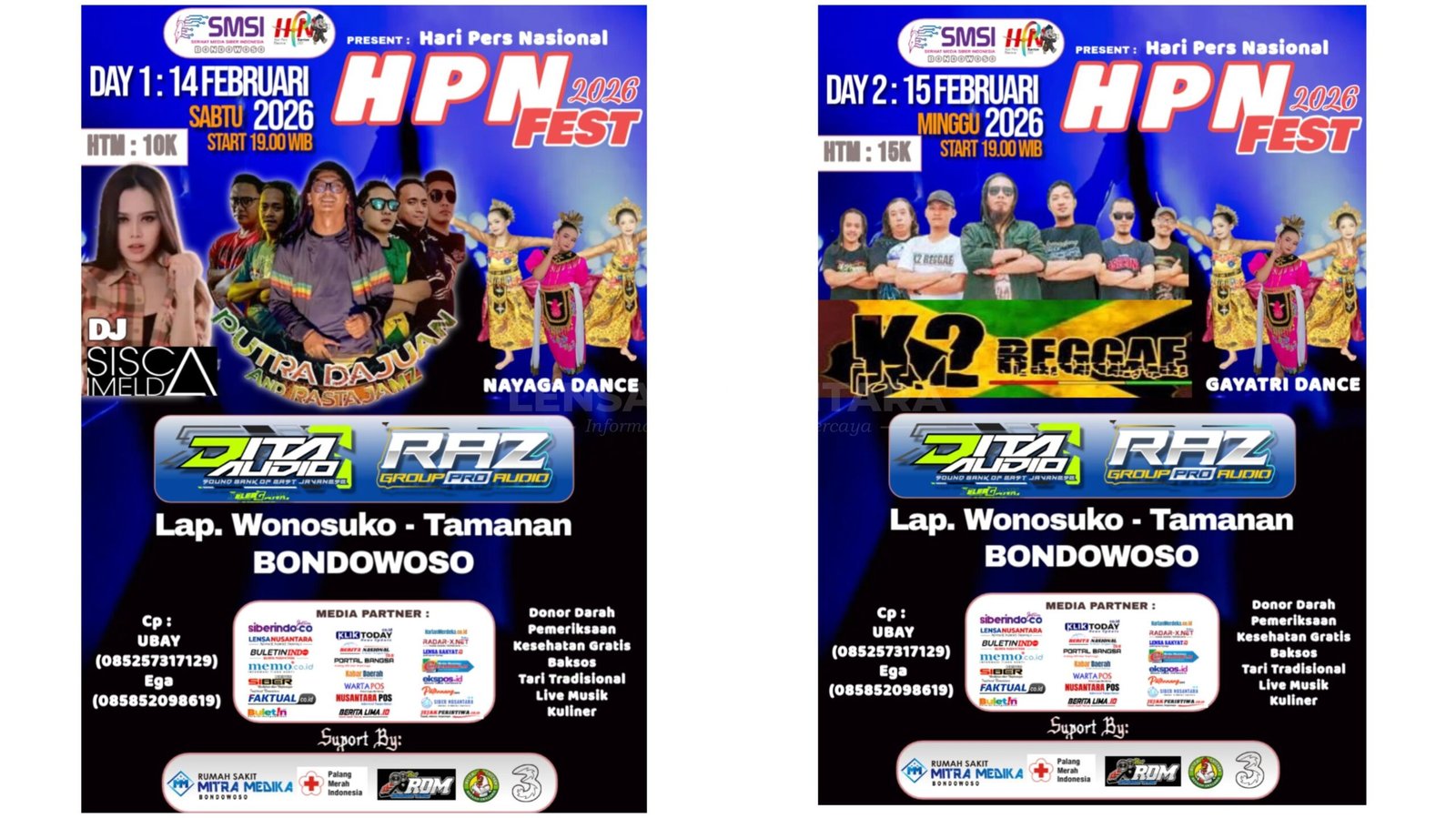 Catat waktunya, ajak keluarga dan sahabat, serta jadilah bagian dari semangat kebersamaan di HPN Fest 2026 bersama SMSI Bondowoso.