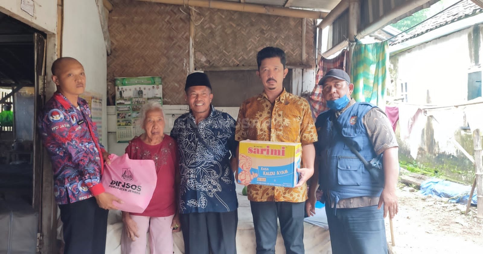 Dinsos Jember Serahkan Bansos bagi Lansia di Desa Biting Arjasa, (19/2/2026).(Foto: Badri/ Lensa Nusantara)
