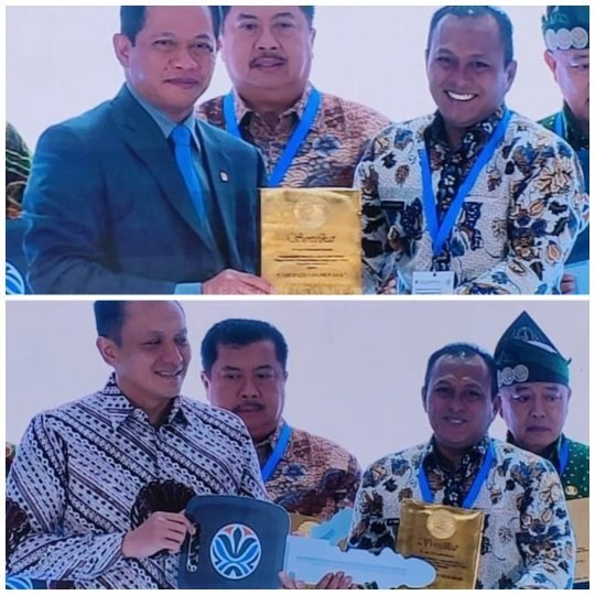 Apresiasi yang diterima oleh Wakil Bupati Pamekasan, H. Sukriyanto tersebut diberikan langsung Menteri Lingkungan Hidup / Kepala Badan Pengendalian Lingkungan Hidup, Dr. Hanif Faisol Nurofiq.