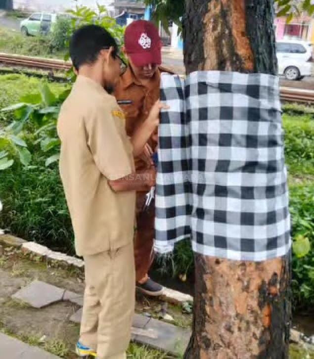 Purwakarta,LENSANUSANTARA.CO.ID – Lurah Tegalmunjul, Yudha Prasetya, membuktikan dirinya sebagai pemimpin inovatif! Salah satu program unggulannya yang paling menarik adalah merapihkan pohon-pohon di lingkungan desa dengan menggunakan kain bersimbol hitam putih, Rabu (25/02/2026).