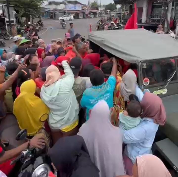 Dari pantauan di lokasi, warga langsung berlarian saat mengetahui mobil yang membawa paket sembako tiba di Pertigaan Pasar Mangaran. Dalam sekejap, paket sembako yang berisi beras, gula pasir, dan minyak goreng itu ludes tak tersisa.