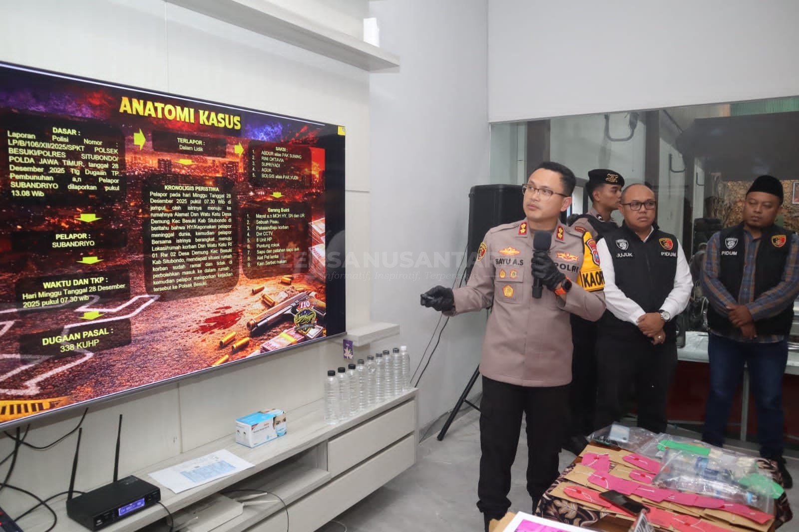 SITUBONDO, LENSANUSANTARA.CO.ID – Kapolres Situbondo AKBP Bayu Anuwar Sidiqie menggelarkonferensi pers yang dihadiri awak media Situbondo. Salah satu yang disampaikan dalam kesempatan itu yakni misteri di tewasnya satu keluarga di Desa Demung, Kecamatan Besuki pada penghujung tahun 2025 lalu.