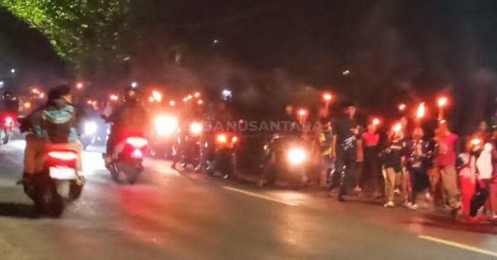 Peserta malam takbir dengan membawa obor berkeliling desa, Jumat, 20/3/2026. Foto : (Gunawan/Lensa Nusantara).