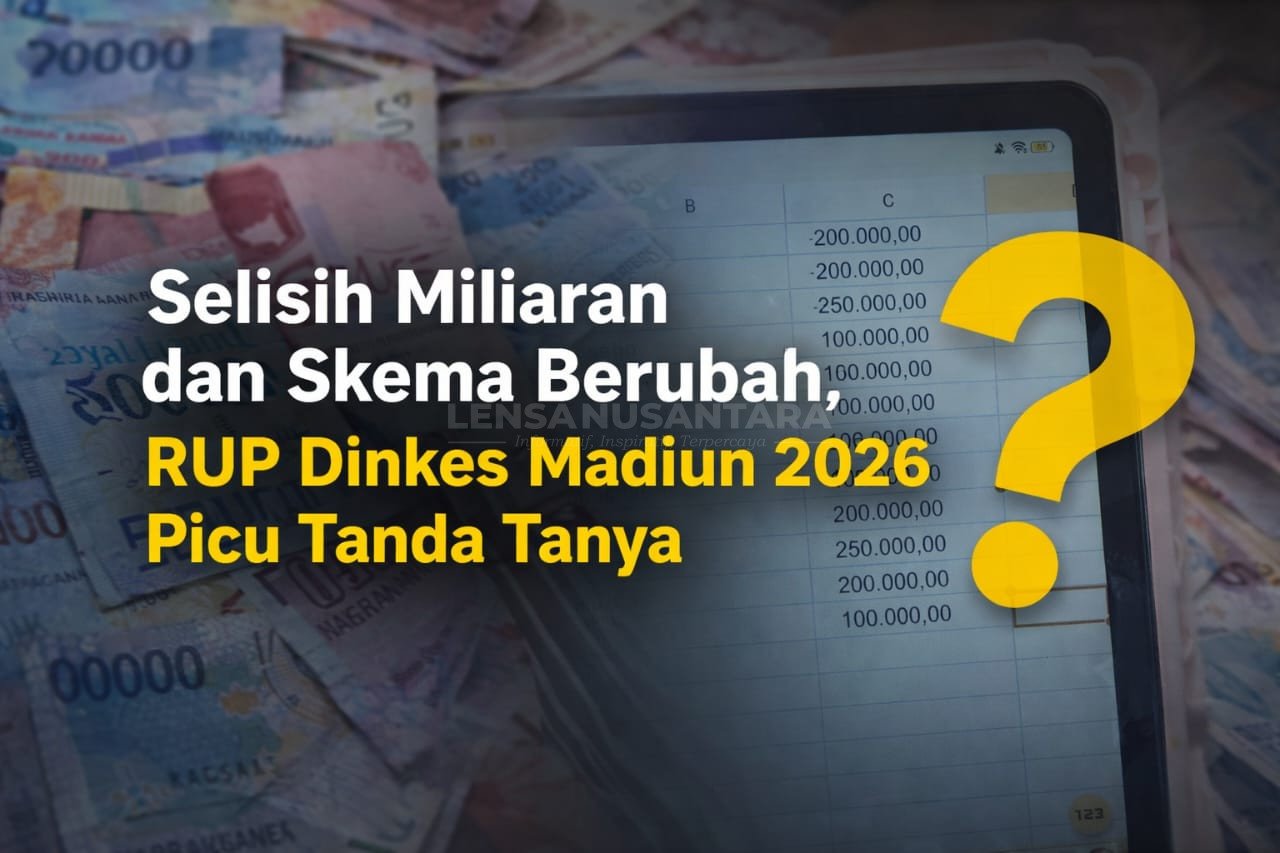 Madiun, LENSANUSANTARA.CO.ID – Perubahan skema anggaran Belanja Kontribusi Jaminan Kesehatan bagi Penerima Bantuan Iuran (PBI) dalam Rencana Umum Pengadaan (RUP) tahun 2026 oleh Dinas Kesehatan, Pengendalian Penduduk, dan Keluarga Berencana (Dinkes PPKB) Kota Madiun memunculkan pertanyaan atas praktik penganggaran pada tahun-tahun sebelumnya.