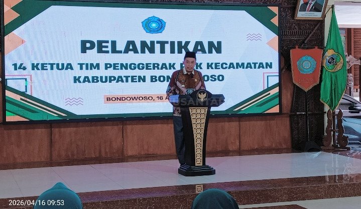 Bondowoso, LENSANUSANTARA.CO.ID – Sebanyak 14 Ketua Tim Penggerak Pemberdayaan dan Kesejahteraan Keluarga (TP PKK) tingkat kecamatan di Kabupaten Bondowoso resmi dilantik dalam sebuah prosesi khidmat yang digelar di Pendopo Bupati Bondowoso, Kamis (16/4/2026).