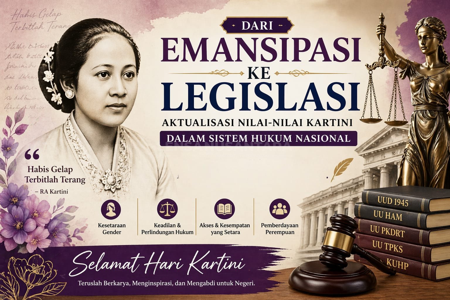 Kartini tidak hanya berbicara tentang kebebasan perempuan dalam arti sempit, tetapi lebih jauh menyentuh aspek keadilan, kesetaraan, dan kemanusiaan—nilai-nilai yang sejatinya merupakan roh dari setiap sistem hukum modern.