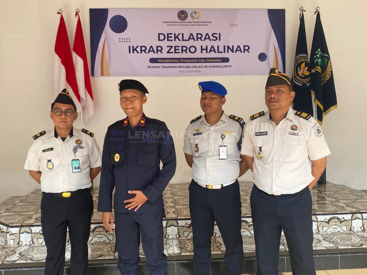 Sawahlunto, LENSANUSANTARA.CO.ID — Rumah Tahanan Negara (Rutan) Kelas IIB Sawahlunto menggelar apel deklarasi ikrar Zero Halinar (Handphone, Pungutan Liar, dan Narkoba) pada Rabu pagi (22/4) pukul 08.00 WIB di Aula Muhammad Hatta. Kegiatan ini dipimpin langsung oleh Kepala Rutan Sawahlunto, Mustofa, serta diikuti oleh seluruh pegawai dan warga binaan.