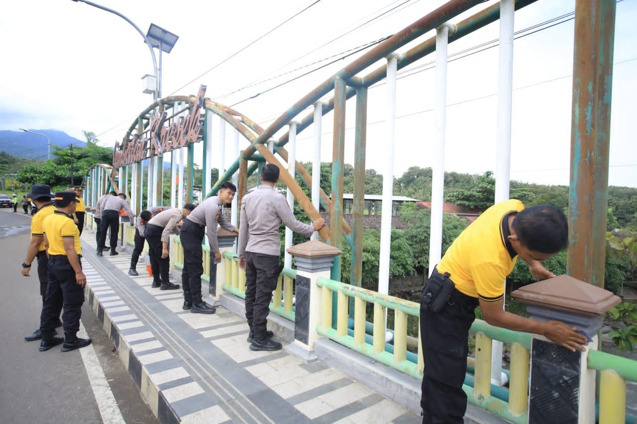 Dalam kegiatan tersebut, personel bersama-sama melaksanakan pengecatan jembatan serta membersihkan rumput liar di sekitar area jembatan. Aksi ini merupakan bentuk nyata kepedulian Polres Madiun terhadap kebersihan dan keindahan lingkungan, sekaligus mendukung program Polri yang berorientasi pada pelayanan dan pengabdian kepada masyarakat.