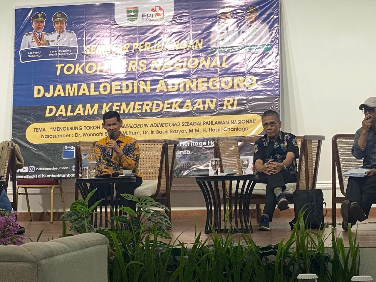 Seminar ini menghadirkan sejumlah narasumber, di antaranya Wannofri Samry yang memaparkan persiapan akademik pengusulan Adinegoro sebagai pahlawan nasional, Basril Basyar yang mengulas jejak pemikiran Adinegoro, serta Hasril Chaniago yang membahas strategi mengangkat tokoh nasional menjadi pahlawan nasional.