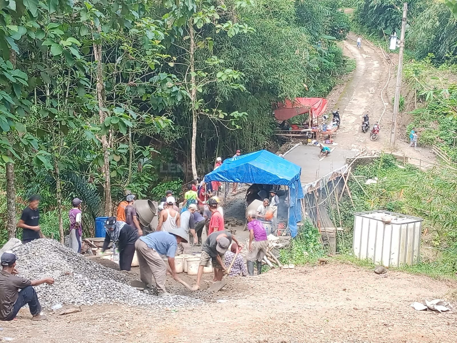 Pantauan lensanusantara.co.id saat melihat pengerjaan di lokasi, tidak hanya laki-laki, kaum perempuan dan anak-anak pun terlihat begitu semangat membantu pengerjaan jembatan yang memiliki panjang 16 meter dan ketebalan lantai 20 cm tersebut.